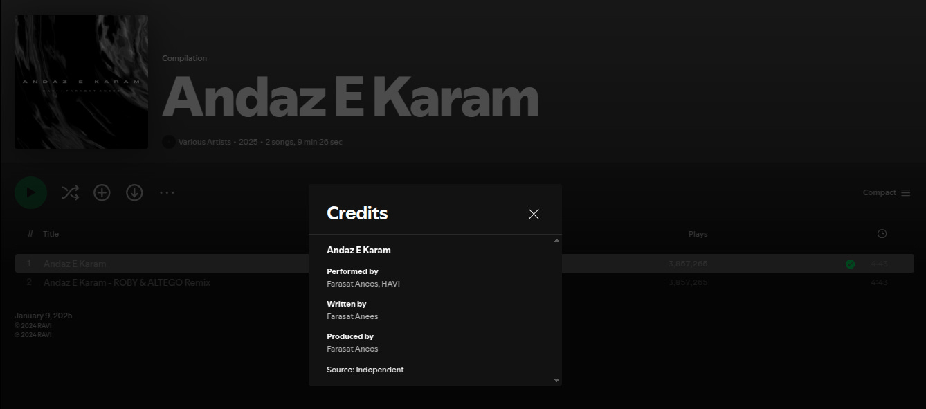 P.S. to avoid any legal hassles I’ve attached a screenshot of the song credits from the Spotify app itself.